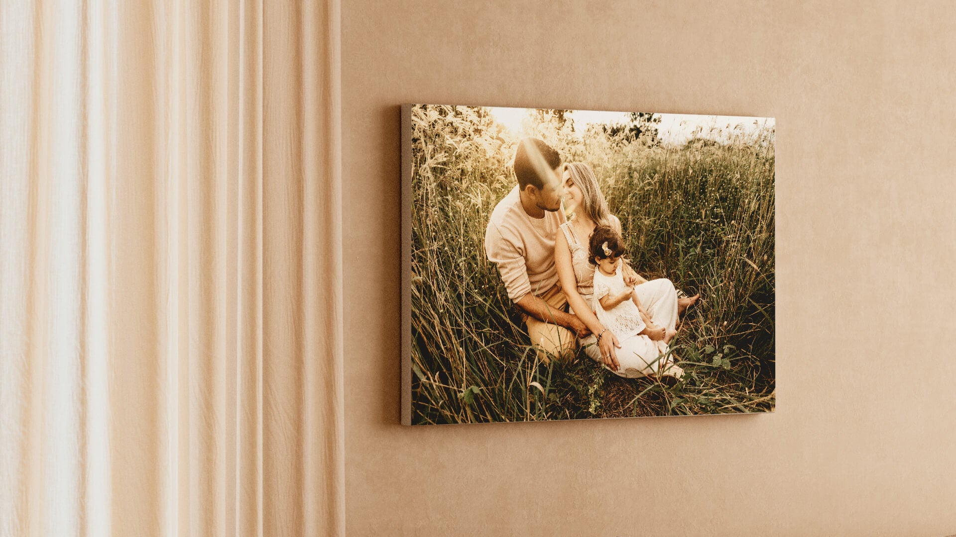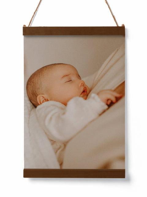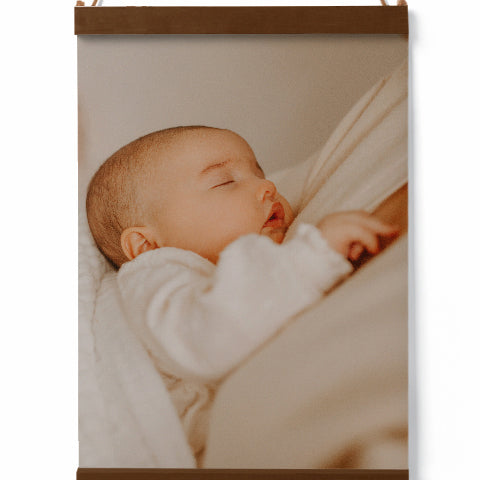 Print your picture on a high quality canvas and hang it with our handcrafted wood hanging rails. A unique way to share memories.